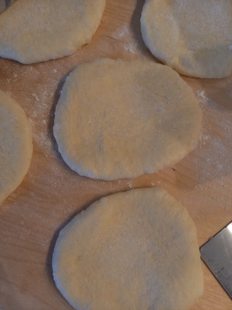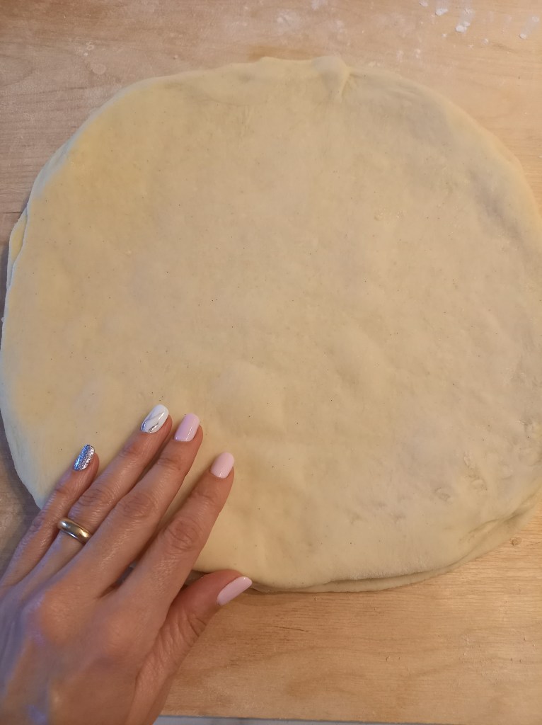 Stendete leggermente ogni pallina con il mattarello su un piano infarinato e fate riposare ancora 10 minuti.