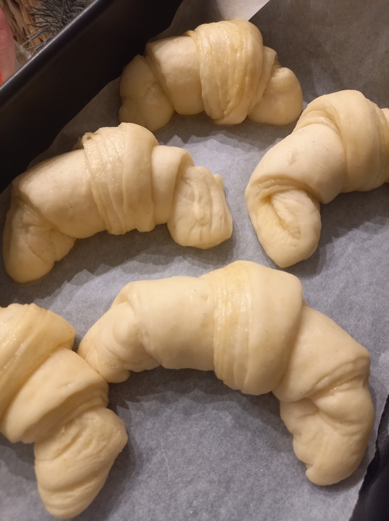 Posizionate i cornetti sulla teglia rivestita da carta forno e, lasciate lievitare fino al raddoppio.